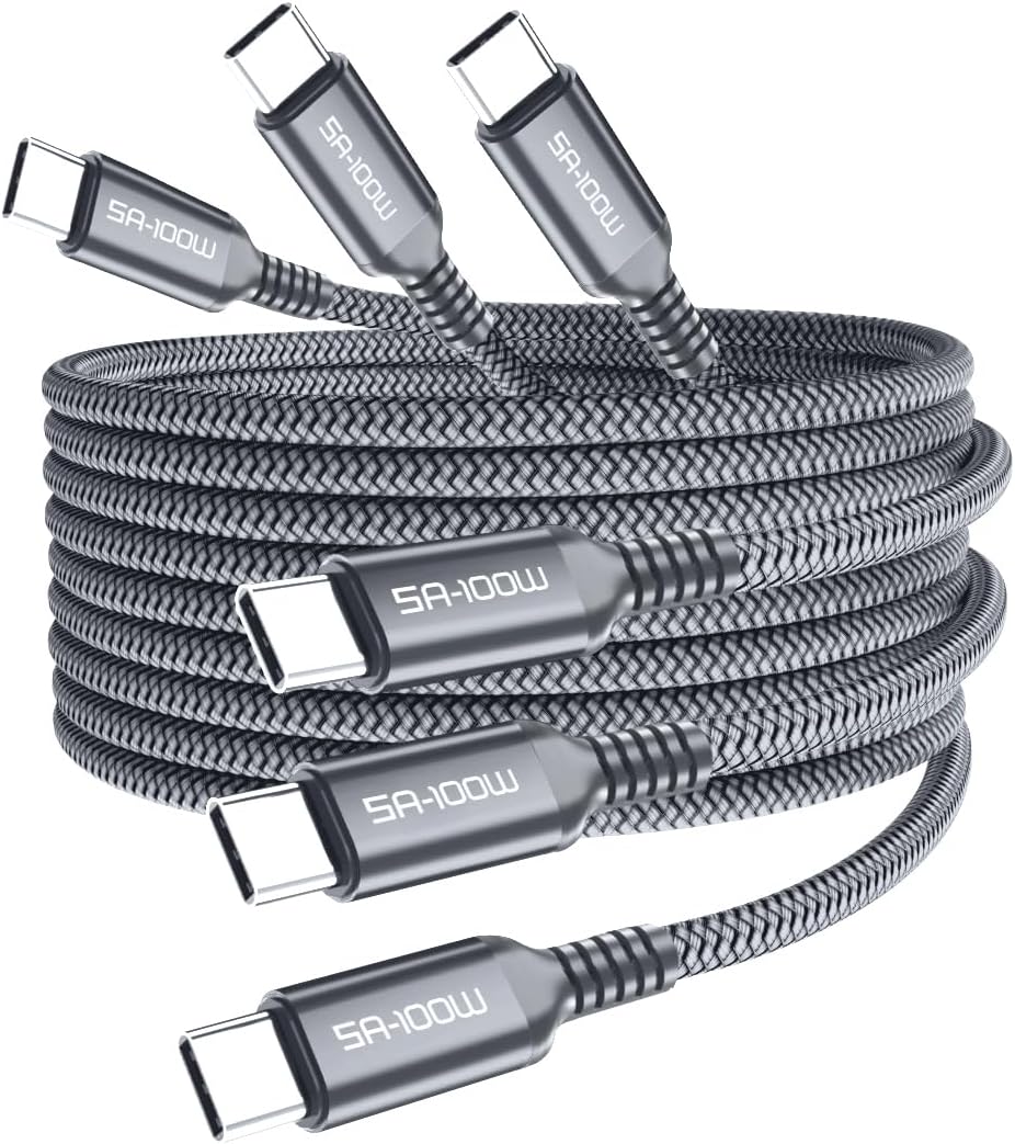 Elebase USB C to Type C 100W Cable 3Pack 3.3/6.6/10ft,Long Power Delivery Charging PD Charger Cord for MacBook Pro,iPhone 15,Car Play,iPad 10 Air 4 5 Mini 6,Samsung Galaxy Note S22 S23 S24,A73,Tab S8