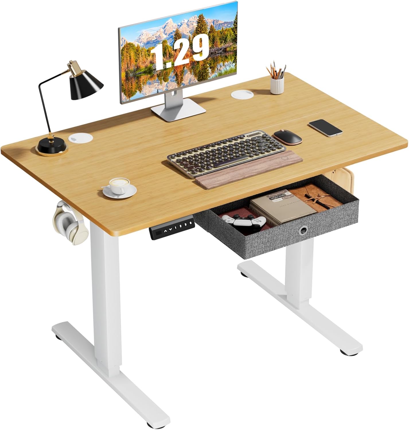 Sweetcrispy Electric Standing Desk Adjustable Height, 40 x 24 inch Stand up Sit Stand Desk with Drawers, Ergonomic Home Office Rising Table Computer Workstation Gaming Work Desk, Oak