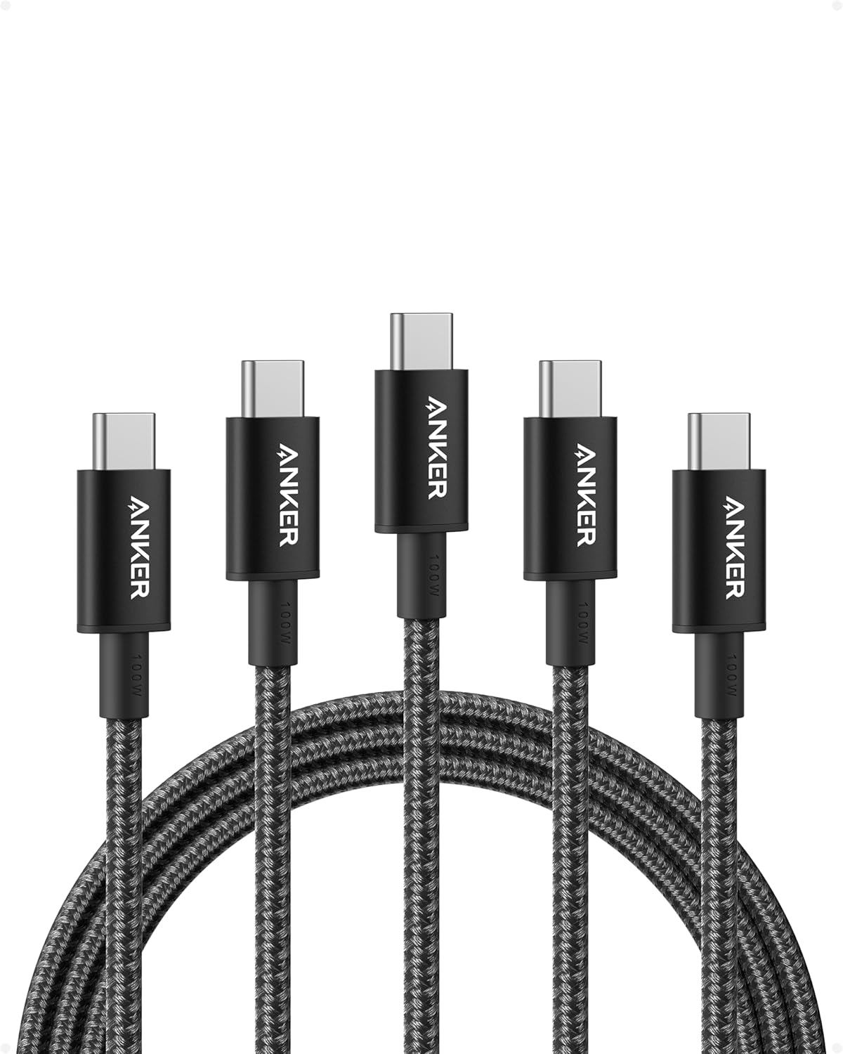 Anker USB C Charger Cable (6ft 100W, 5Pack), USB 2.0 Type C Fast Charging Cable for iPhone 15 / 15Pro / 15Plus / 15ProMax MacBook Pro 2020, iPad Pro 2020, iPad Air 4, Samsung Galaxy S23+/S23 Ultra